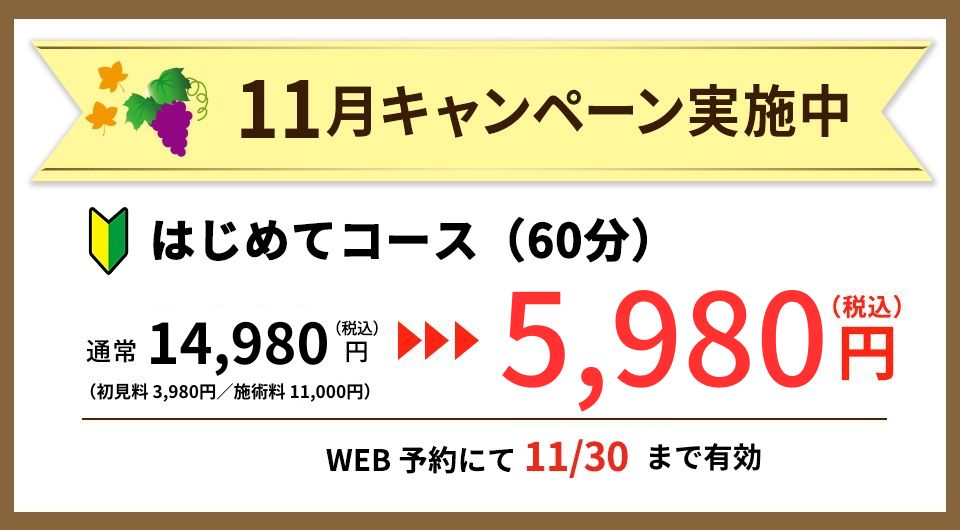 ※初回の施術時間はカウンセリング・検査の時間を考慮して60分程度かかります。